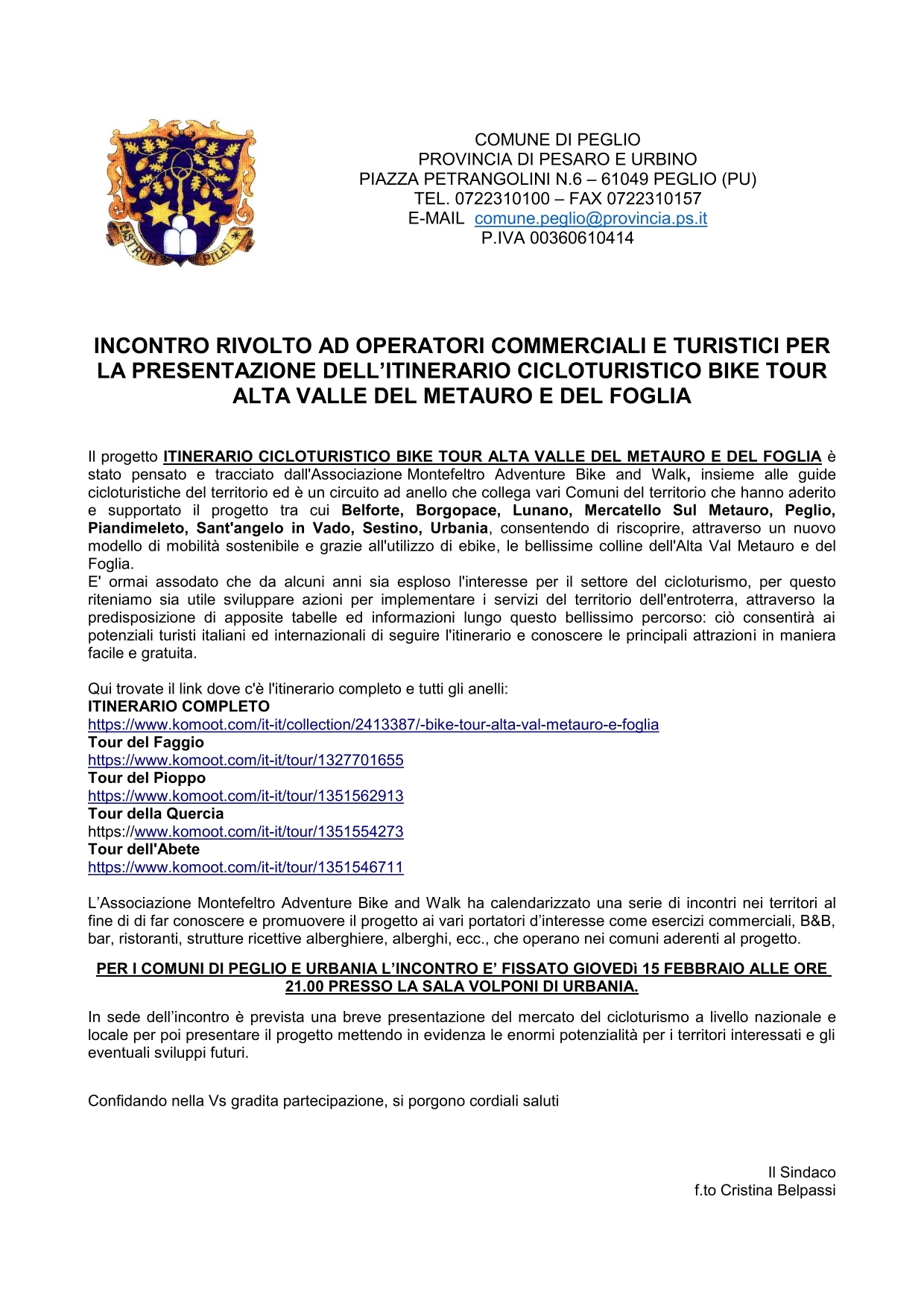 Presentazione Itinerario Cicloturistico Bike Tour Alta Valle del Metauro e del Foglia